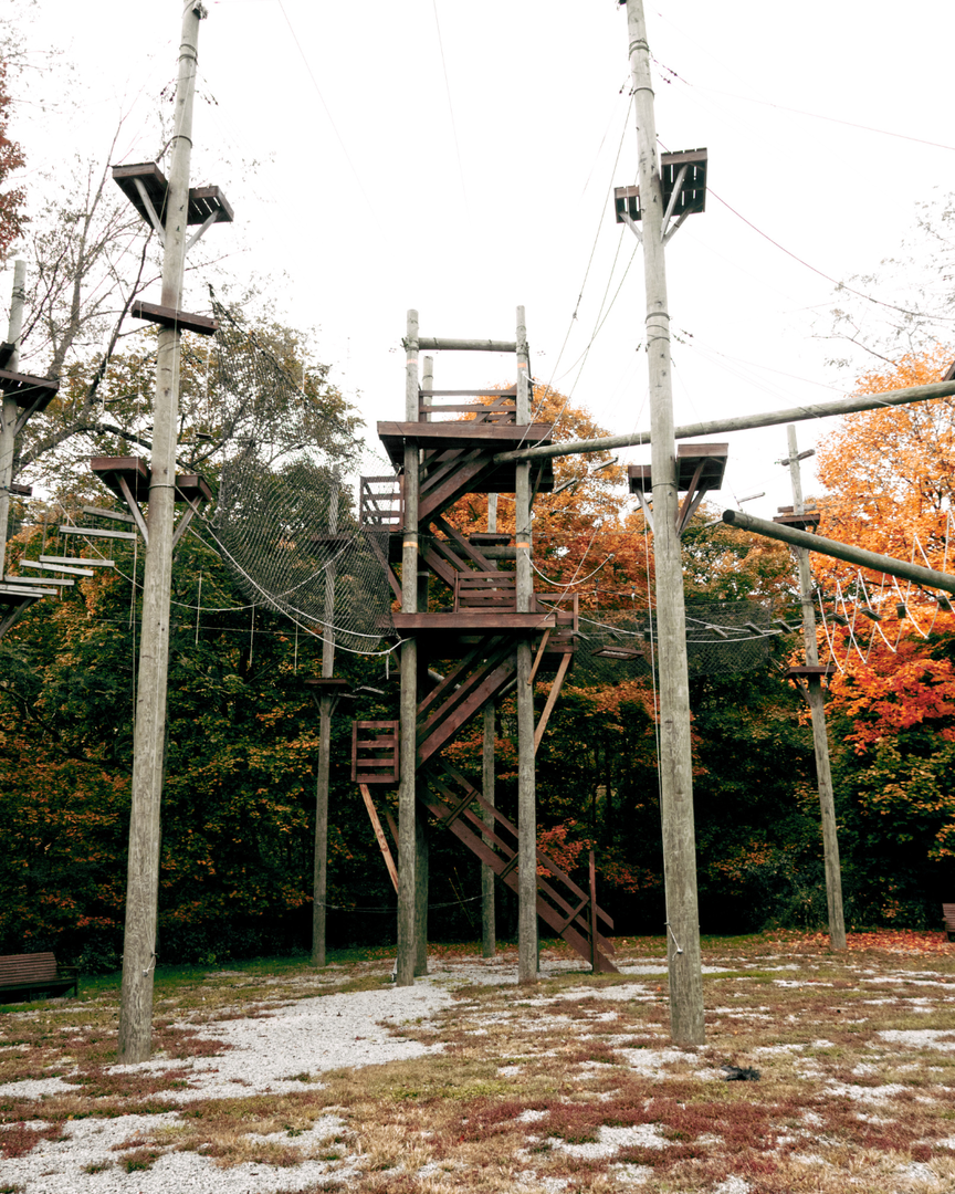 Our 25 ft level and 40 ft level Double Decker course allows all participants to be actively involved in the adventure experience at the same time. Each participant must work with a partner for the entire time on the course which allows the pair to exercise accountability and freedom to take on which ever challenge element they choose together. This course also features our giant swing, and tandem zip-line. Participants must be at least 12 years old.
