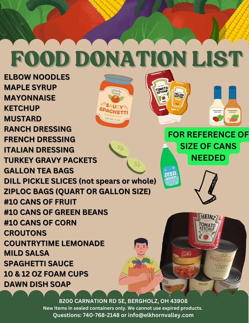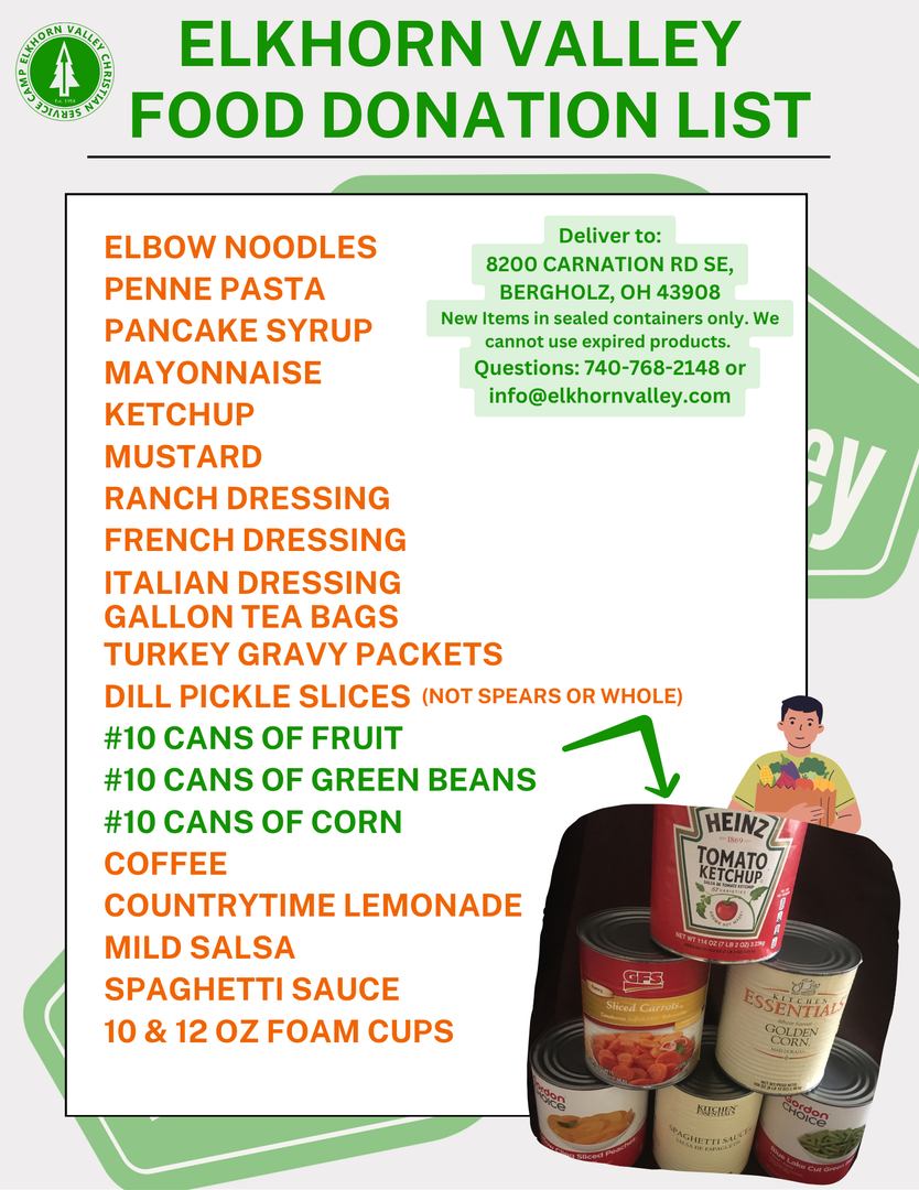 Want to help out camp in a unique way? Gather up some of these items and bring them out to camp to donate and help our food supply cost go down this year!